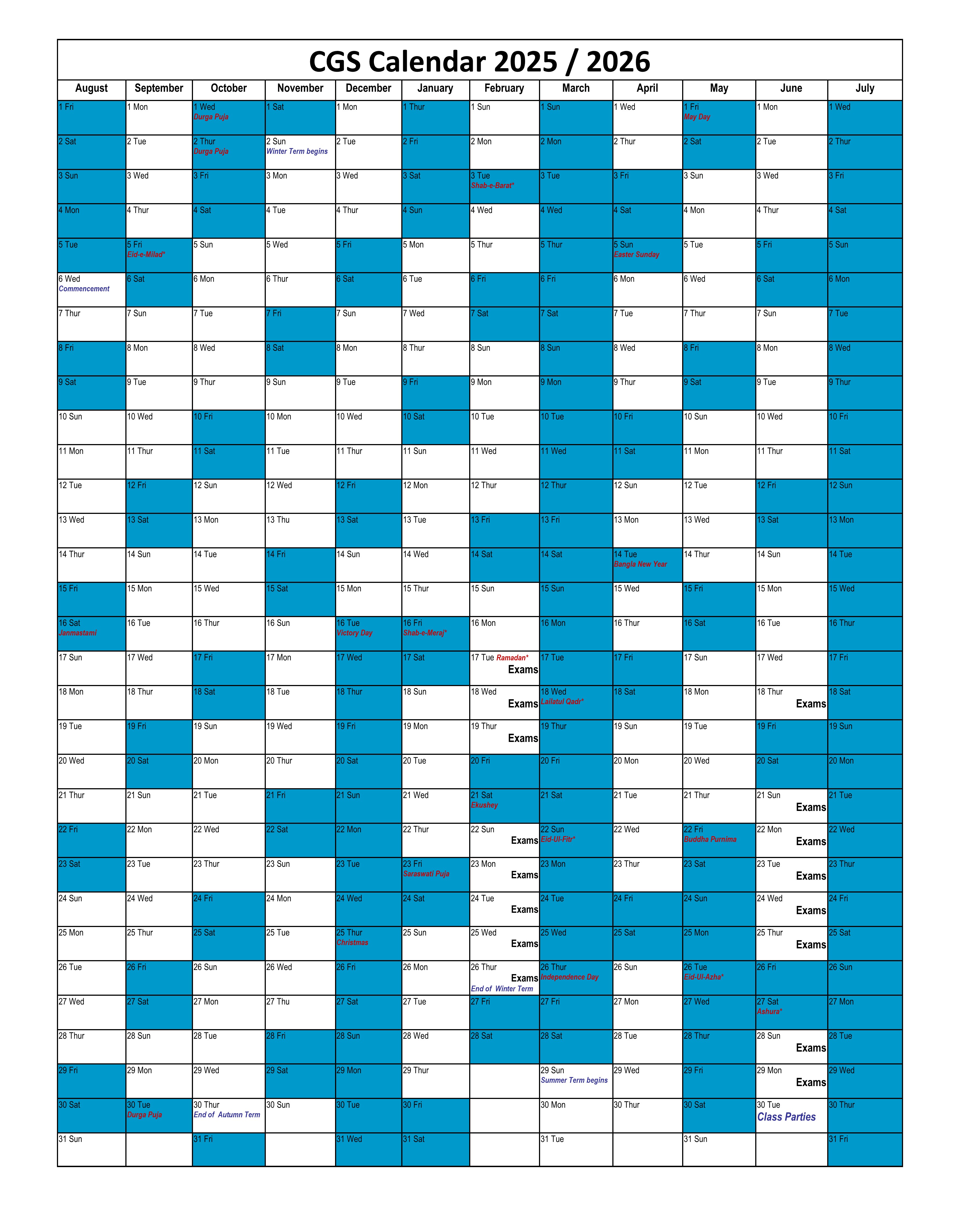 CGS Calendar 2025/ 2026